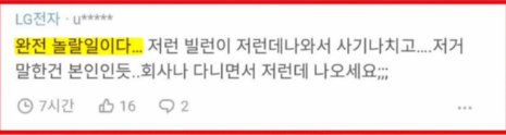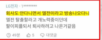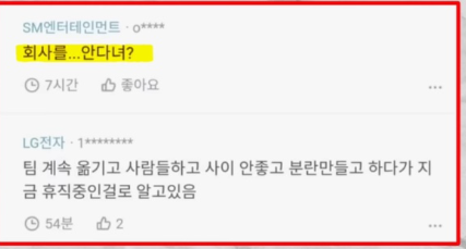 엘지전자 대기업 회사에 다닌다고 하니, 엘지직원이 블라인드에 폭로를 했습니다. 회사를 안다니고 있다. 나는 솔로 나와서 인스타 팔이피블 하려고 한다. 회사에서 사람들과 사이 안 좋고 분란 만들고 하다가 현재 휴직 중이다.