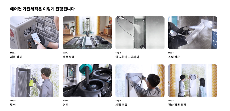 전문업체는 제품을 분해하여 내부에 숨어 있는 이물질과 곰팡이 세균까지 세척하고 직접 관리하기 어려운 제품점검은 물론 소모품 교체등을 해줍니다.