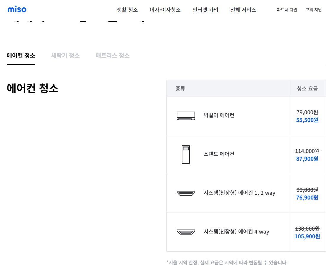 여러 블로그를 둘러본결과 미소앱이라는 곳을 찾았습니다. 에어컨 청소 30%할인 이벤트중이라니 한번 견적서 받아보세요.